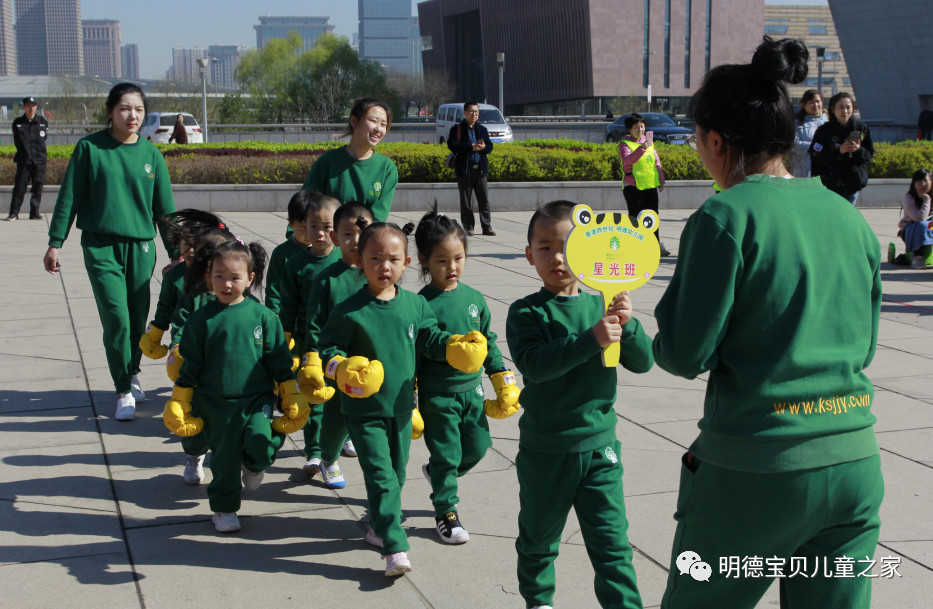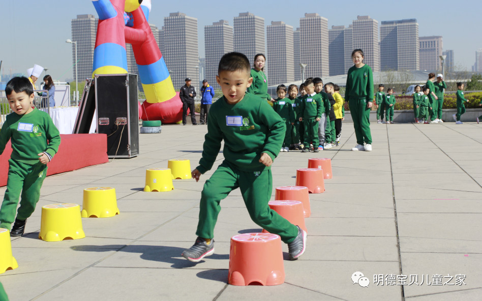 2019年4月14日上午,明德幼儿园在长风商务区国家大剧院西面广场举行了主题为“跨世纪明德幼儿园 健康达人对对碰”的萌宝亲子春季运动会。在雄壮嘹亮的运动员进行曲中,各班级的小运动员们高喊着自己班级的特色口号,有序地入场。