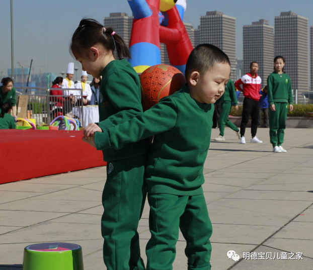 合作运球培养了幼儿之间的合作力,也体现了我们蒙氏教育的理念,以大带小,体验合作游戏的快乐。篮球运动不仅可以促进孩子左右脑平衡发展,增强孩子的意志力,还可以提高孩子的观察力,判断力和反应能力,促进身体灵活度。